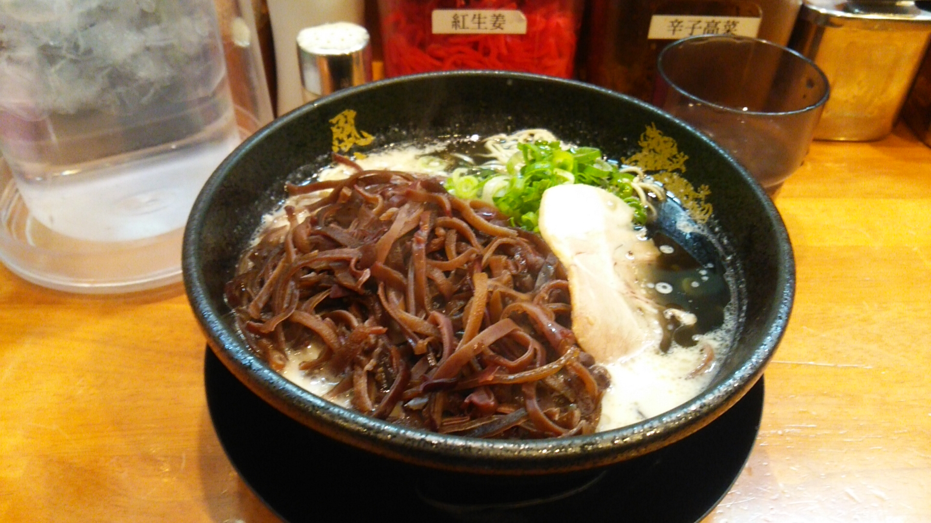 黒マー油 きくらげラーメン、700円。ばりかた。